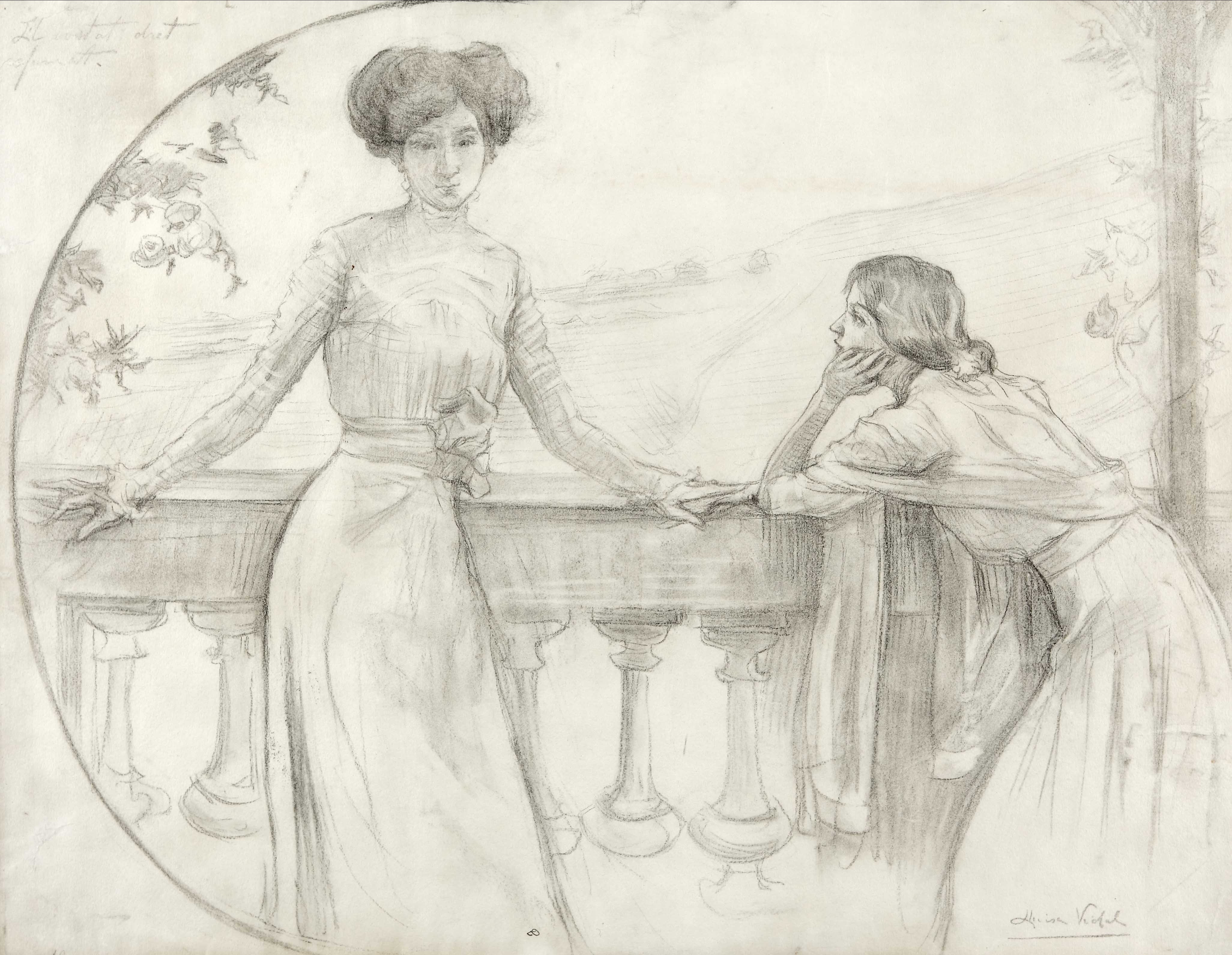 Lluïsa Vidal va donar curs als seus estudis i olis més personals, sorgits de l’harmonia familiar. Es tracta d’exercicis espontanis, amb personatges captats en un instant íntim. La seva germana Marta cosint; l’altra germana, Frasquita, en un moment de privacitat resolt amb una pinzellada lliure. Molts membres de la seva família van ser instruïts o bé es van relacionar amb artistes i intel·lectuals de l’època com ara Mas i Fondevila, Enric Granados, Isaac Albéniz o Pau Casals. Aquest últim va ser el professor de música de la Frasquita i, més tard, el seu marit.