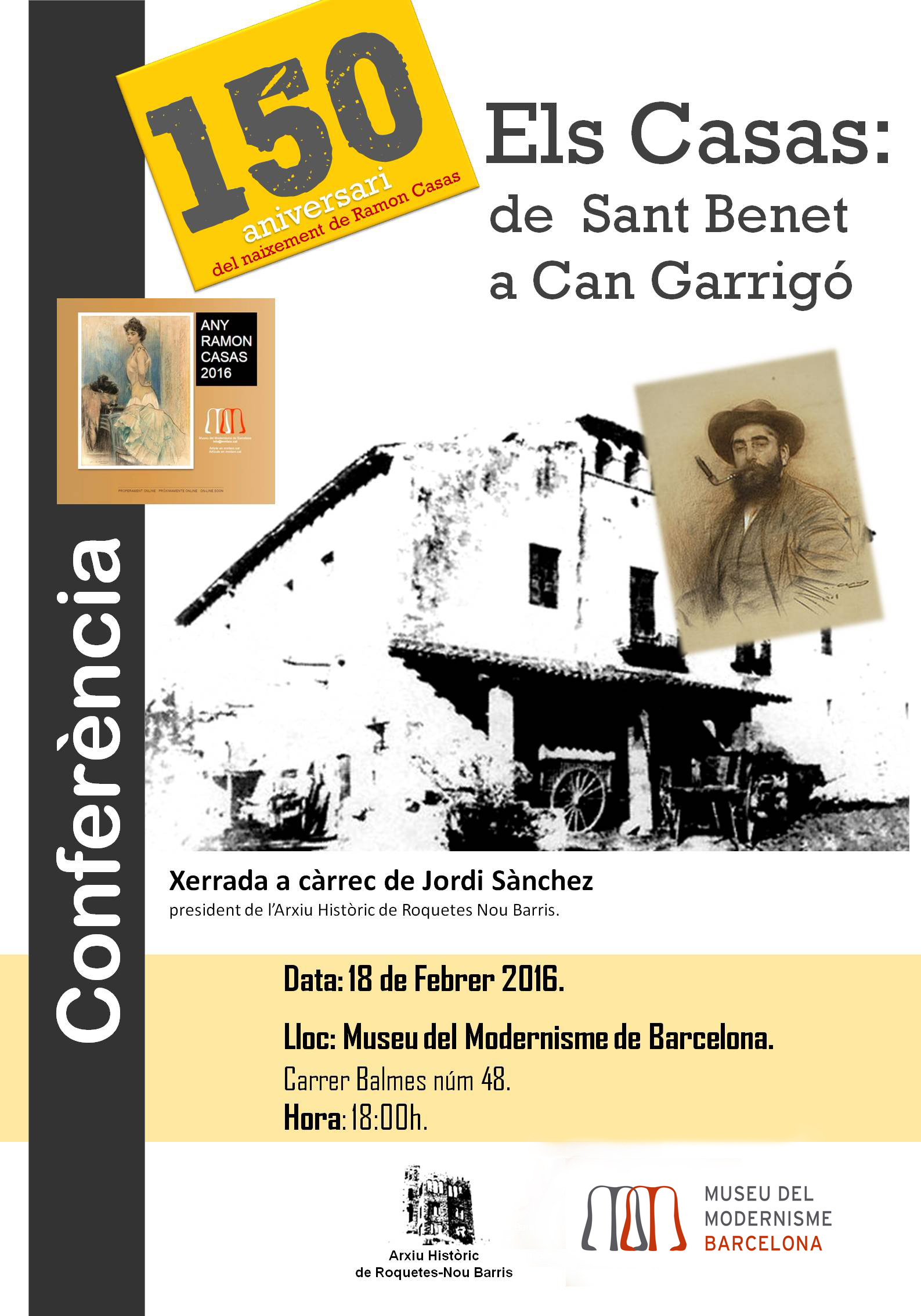 Aquest dijous 18 de febrer, a les 18 hores, gaudirem de l’obertura de l’Any Ramon Casas amb una interessant xerrada a càrrec de Jordi Sánchez, president de l’Arxiu Històric de Roquetes de Nou Barris.